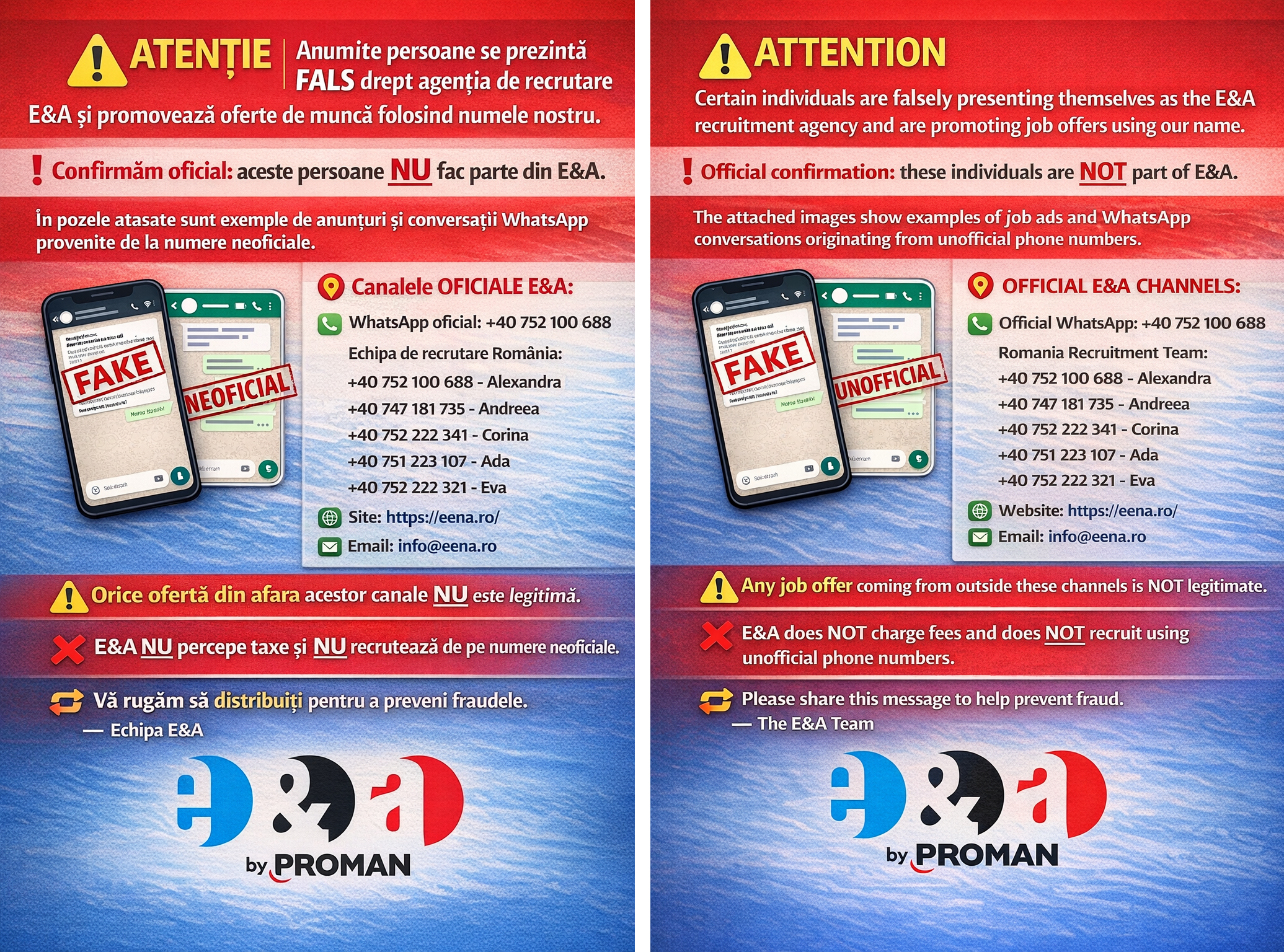 Completează formularul de înregistrare și aplică pentru ofertele de muncă selectate. Cei înregistrați au șanse mai mari să își găsească un job!
